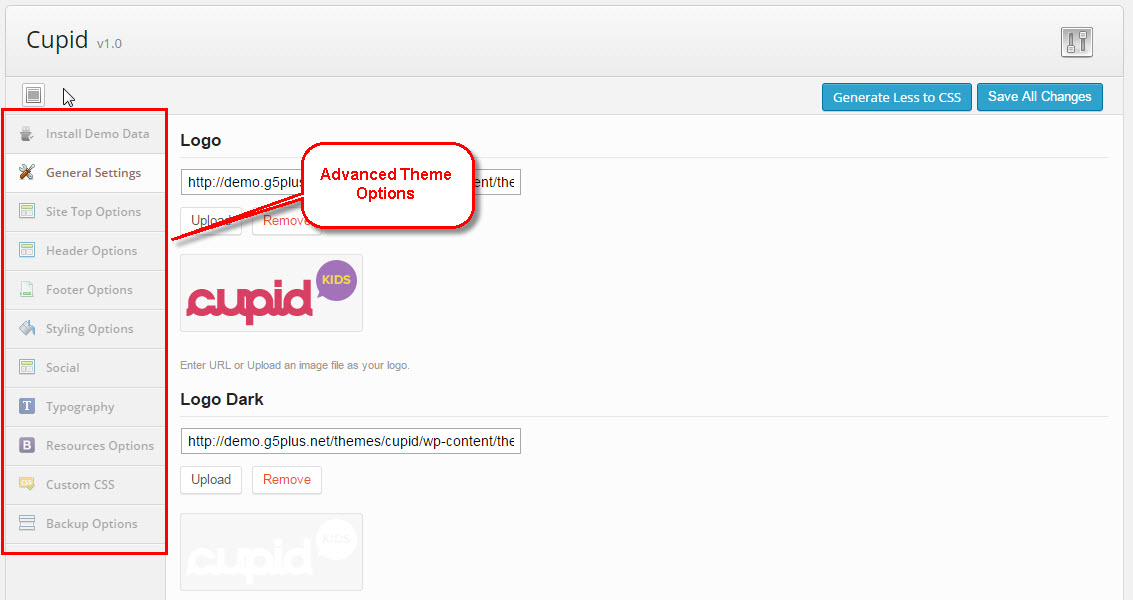 You can also change background colors or upload pictures to use as background patterns or background images for some elements on your website. The side of some elements can also be set with options from this Panel.